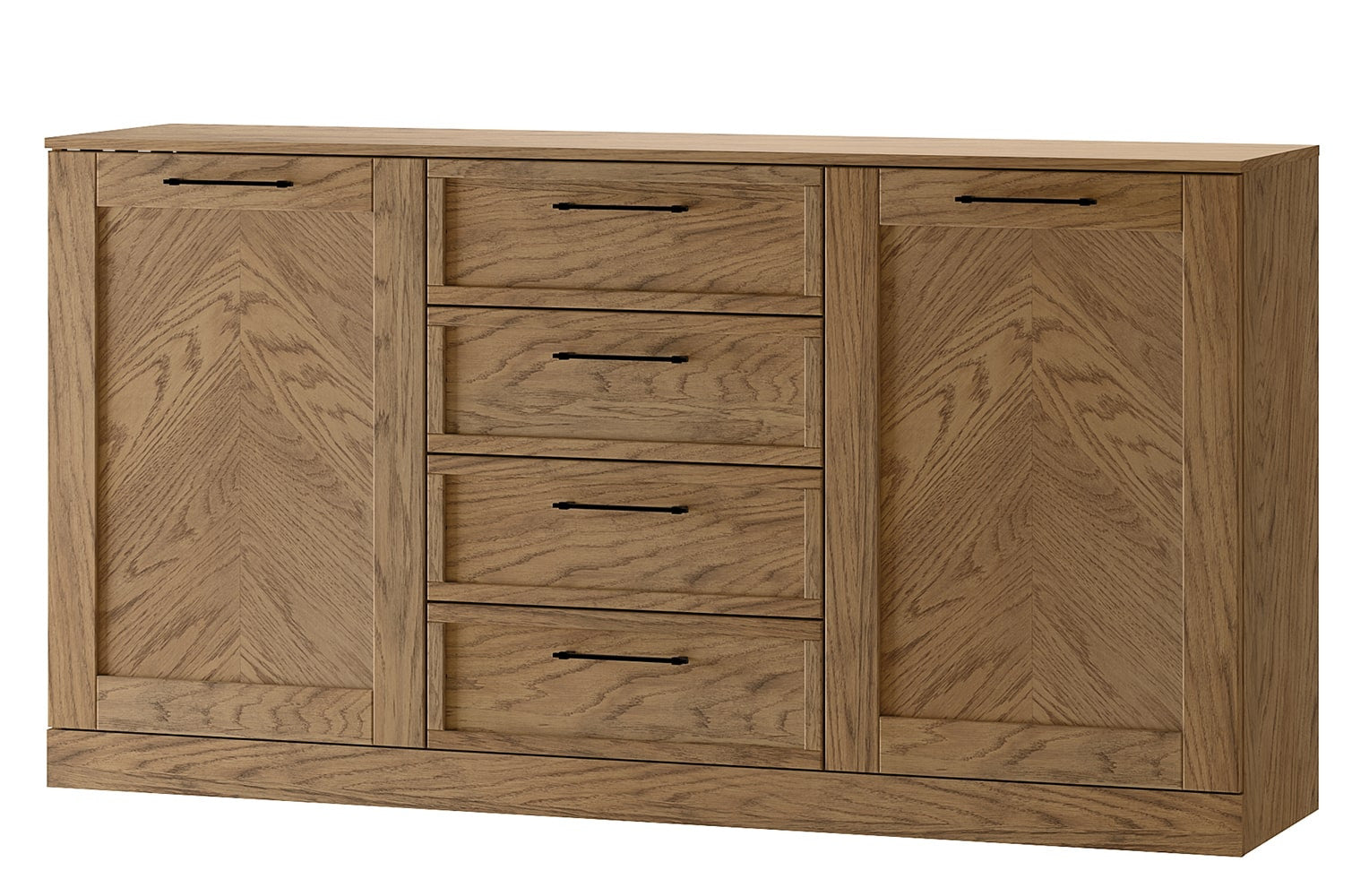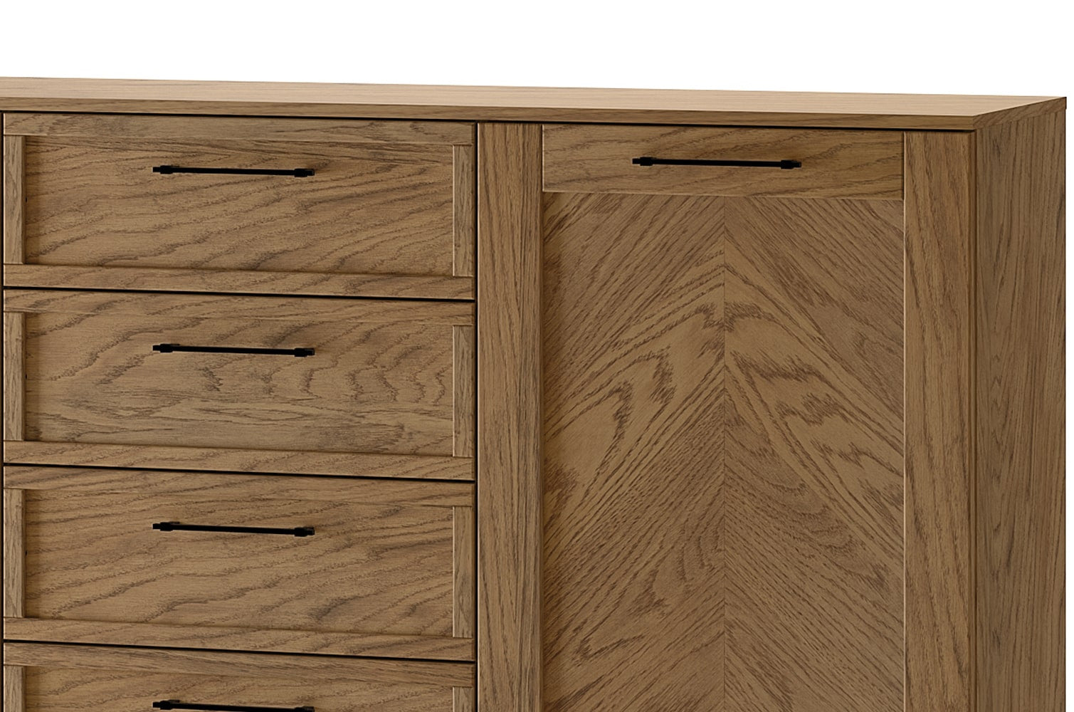La cassettiera COZY 47 unisce la forza del design contemporaneo al calore naturale del rovere. Il frontale con motivo a spina di pesce, caratteristico della collezione, aggiunge consistenza e movimento, mentre le maniglie in metallo nero aggiungono un contrasto moderno e sofisticato.